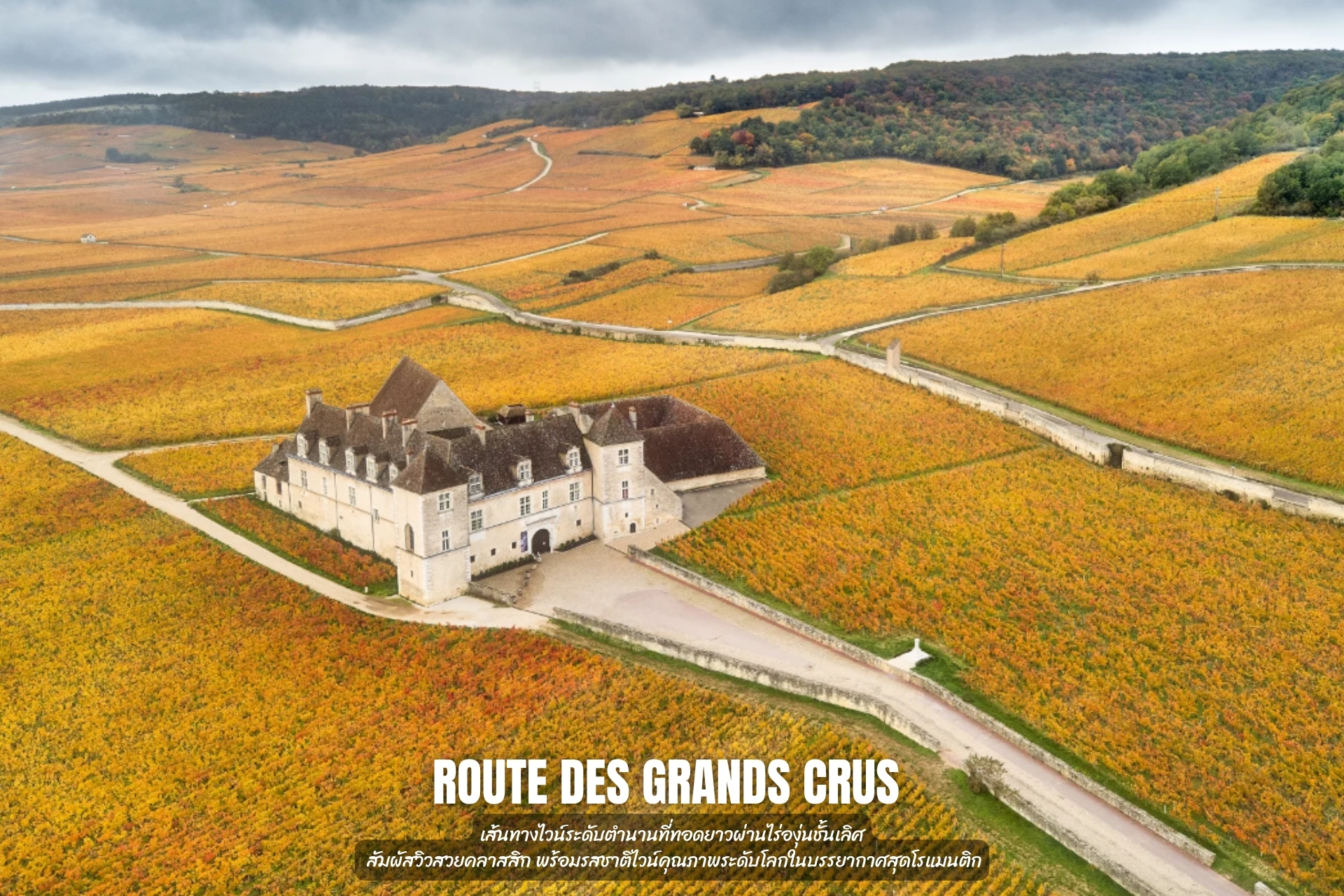 - ชม ถนนแห่งไวน์ชั้นดี Route des Grands Crus เส้นทางไวน์ระดับตำนานที่ทอดยาวผ่านไร่องุ่นชั้นเลิศ สัมผัสวิวสวยคลาสสิก พร้อมรสชาติไวน์คุณภาพระดับโลกในบรรยากาศสุดโรแมนติก