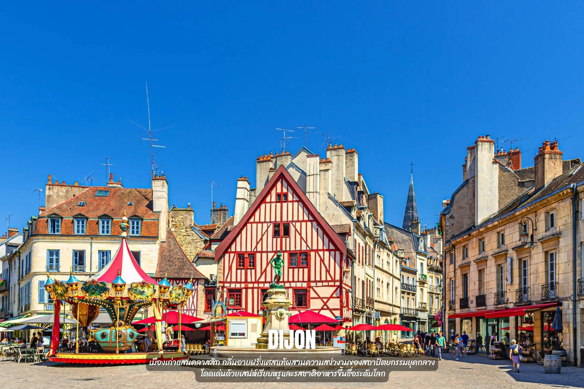 - เที่ยว เมือง Dijon เมืองเก่าแสนคลาสสิก กลิ่นอายฝรั่งเศสแท้ผสานความสง่างามของสถาปัตยกรรมยุคกลางโดดเด่นด้วยเสน่ห์เรียบหรูและรสชาติอาหารขึ้นชื่อระดับโลก