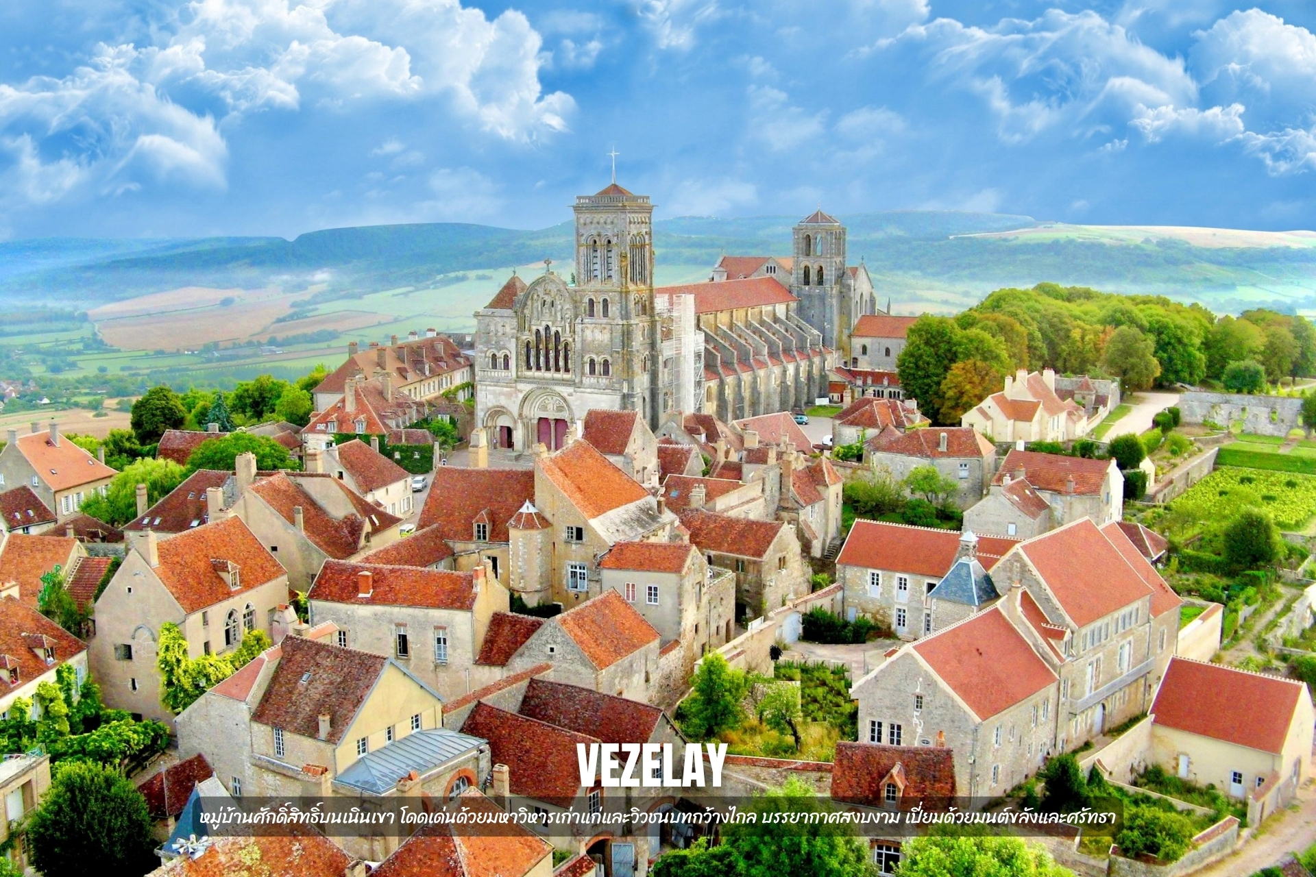 - ชม เมือง Vezelay หมู่บ้านศักดิ์สิทธิ์บนเนินเขา โดดเด่นด้วยมหาวิหารเก่าแก่และวิวชนบทกว้างไกล บรรยากาศสงบงาม เปี่ยมด้วยมนต์ขลังและศรัทธา