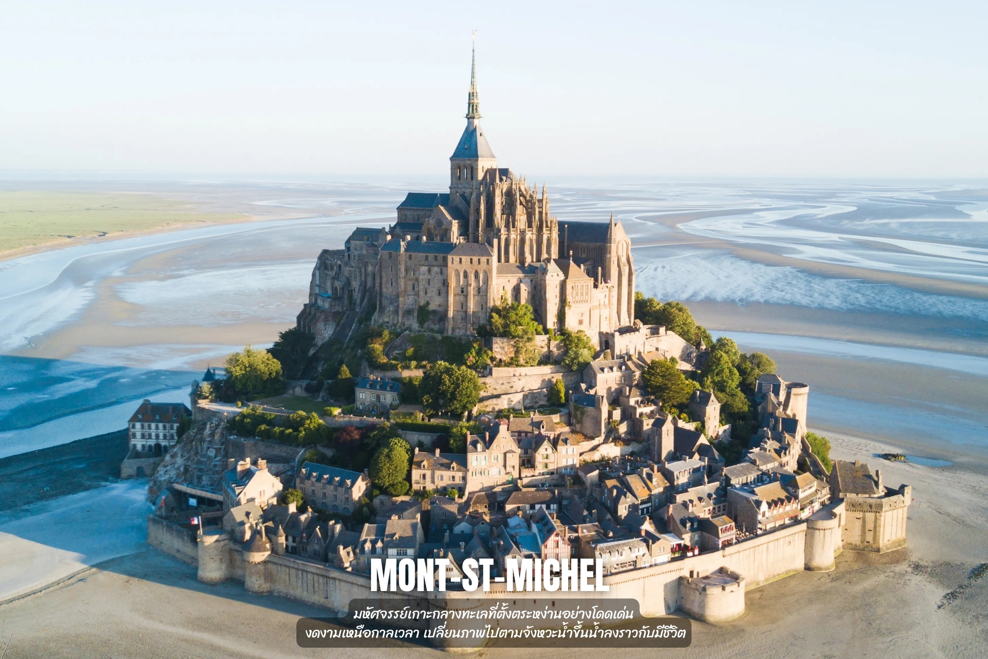 - เที่ยว เมือง Mont-St-Michel มหัศจรรย์เกาะกลางทะเลที่โดดเด่นด้วยสถาปัตยกรรมเหนือกาลเวลา งดงามราวภาพฝัน เปลี่ยนแปลงไปตามจังหวะน้ำขึ้นน้ำลง