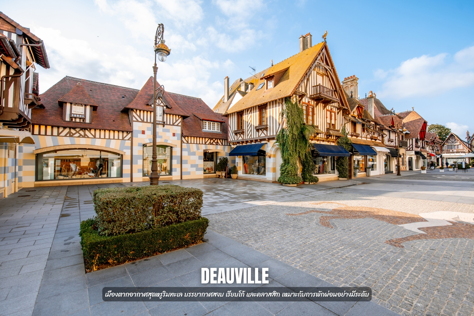 - เที่ยว เมือง Deauville เมืองตากอากาศหรูริมทะเล โดดเด่นด้วยชายหาดกว้างและบรรยากาศสุดคลาสสิก ให้ความรู้สึกเรียบหรู โรแมนติกในสไตล์ฝรั่งเศส