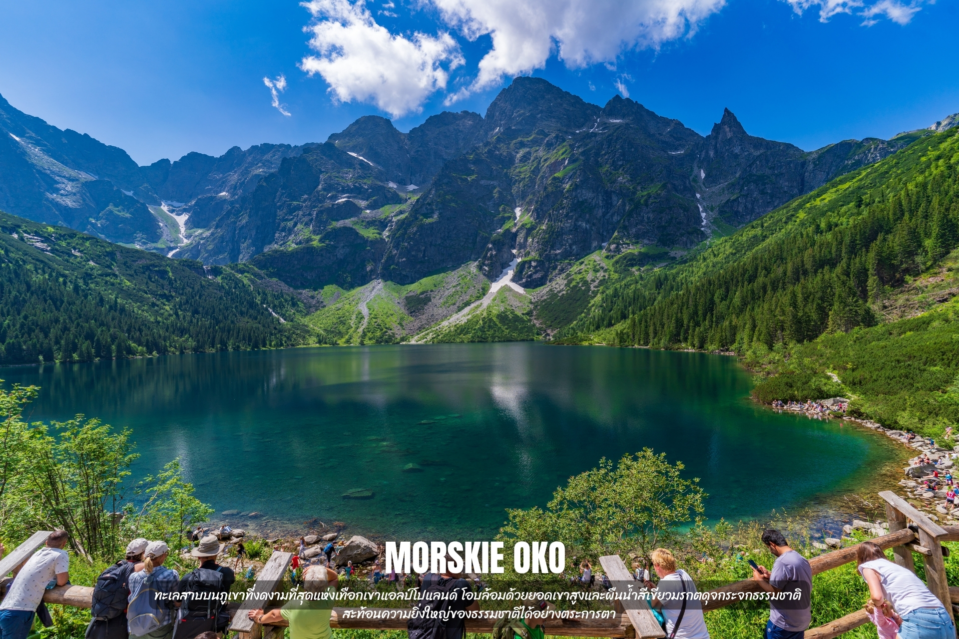 - ชม Morskie Oko ทะเลสาบบนภูเขาที่งดงามที่สุดแห่งเทือกเขาแอลป์โปแลนด์ โอบล้อมด้วยยอดเขาสูงและผืนน้ำสีเขียวมรกตดุจกระจกธรรมชาติ สะท้อนความยิ่งใหญ่ของธรรมชาติได้อย่างตระการตา