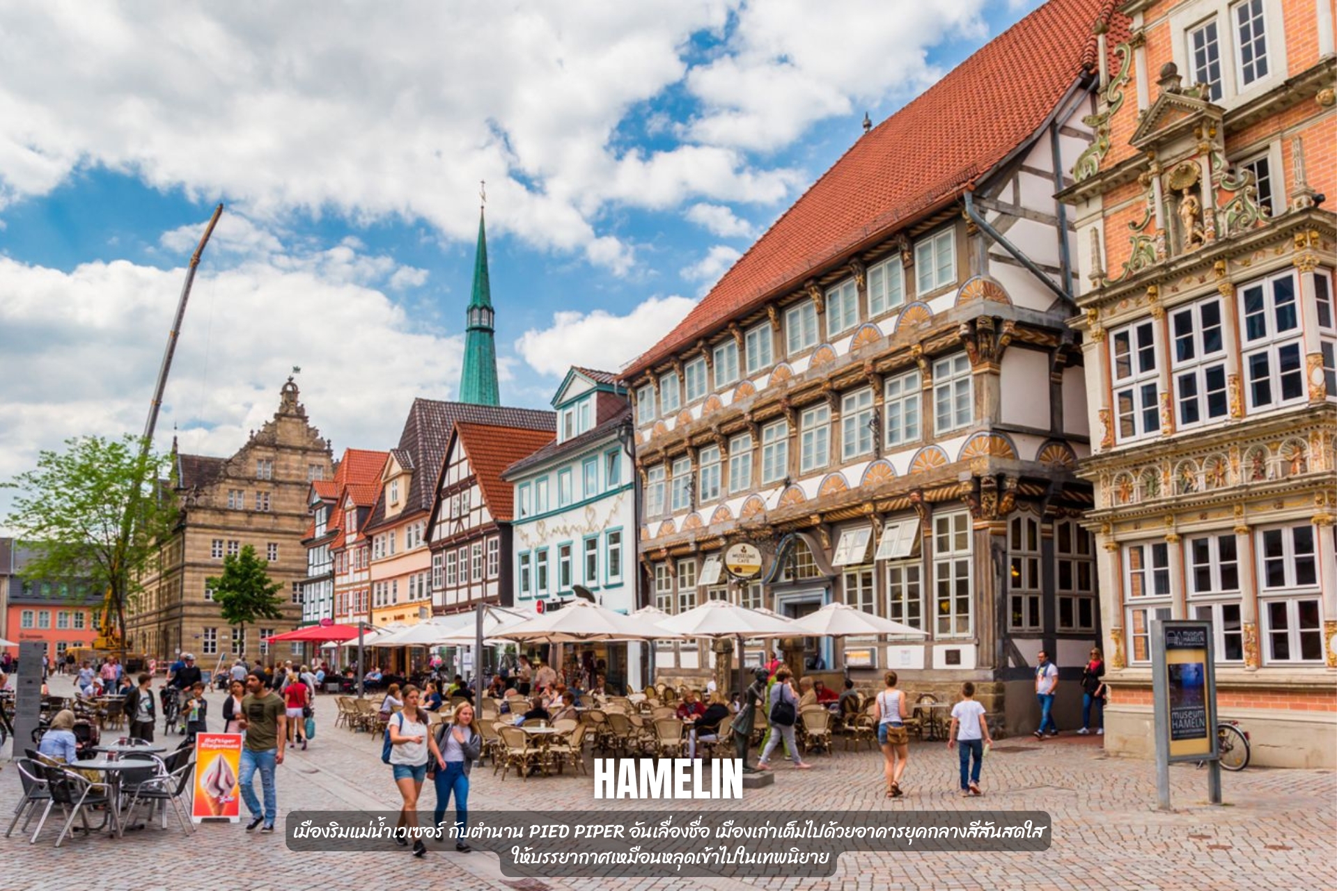 - เที่ยว Hamelin เมืองริมแม่น้ำเวเซอร์ กับตำนาน Pied Piper อันเลื่องชื่อ เมืองเก่าเต็มไปด้วยอาคารยุคกลางสีสันสดใส ให้บรรยากาศเหมือนหลุดเข้าไปในเทพนิยาย