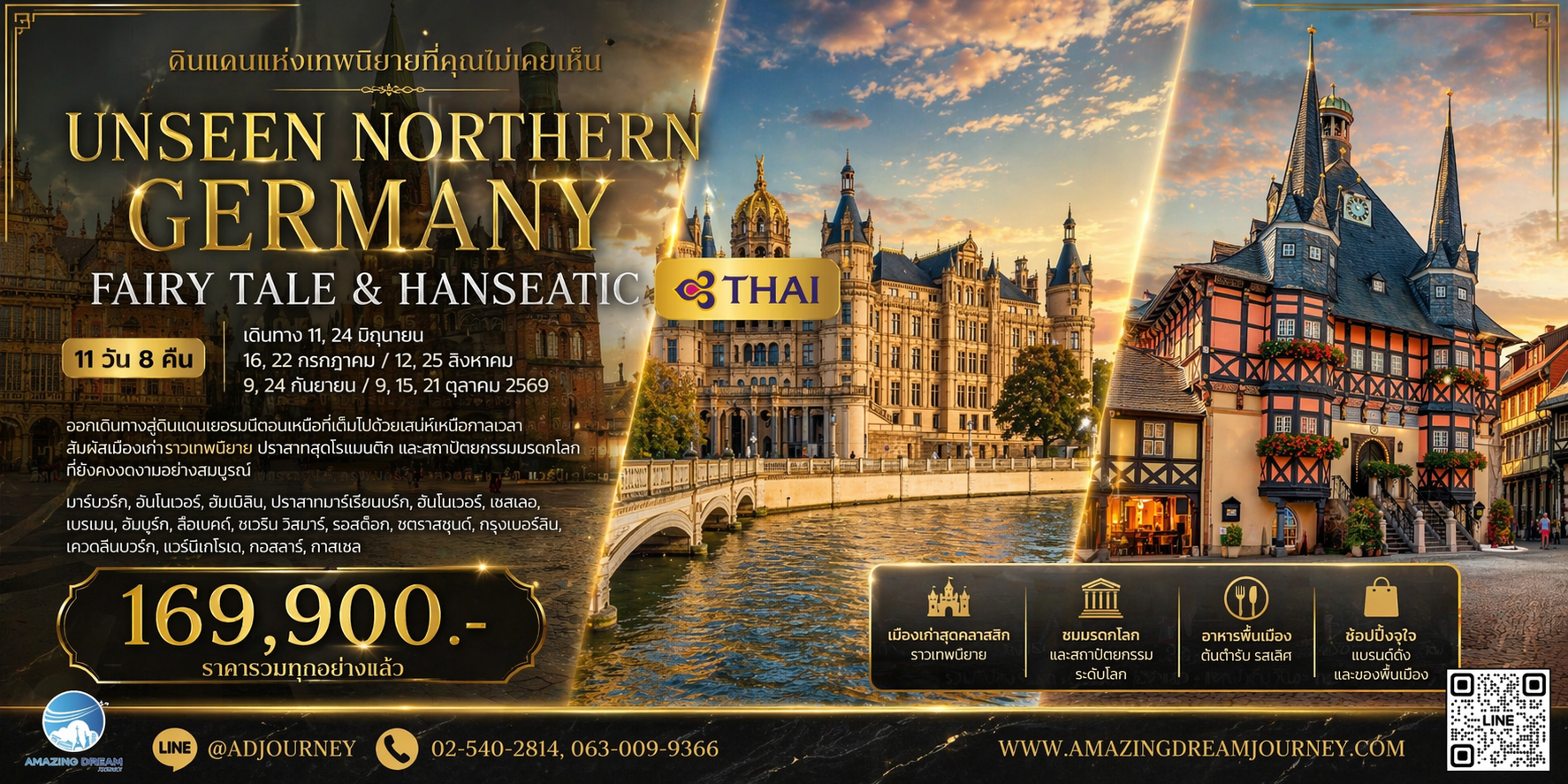 ออกเดินทางสู่ดินแดนเยอรมันตอนเหนือที่เต็มไปด้วยเสน่ห์เหนือกาลเวลา สัมผัสเมืองเก่าราวเทพนิยาย ปราสาทสุดโรแมนติก และสถาปัตยกรรมมรดกโลกที่ยังคงงดงามอย่างสมบูรณ์ ผสานบรรยากาศเมืองท่าคลาสสิกกับกลิ่นอายทะเลบอลติกที่เงียบสงบ